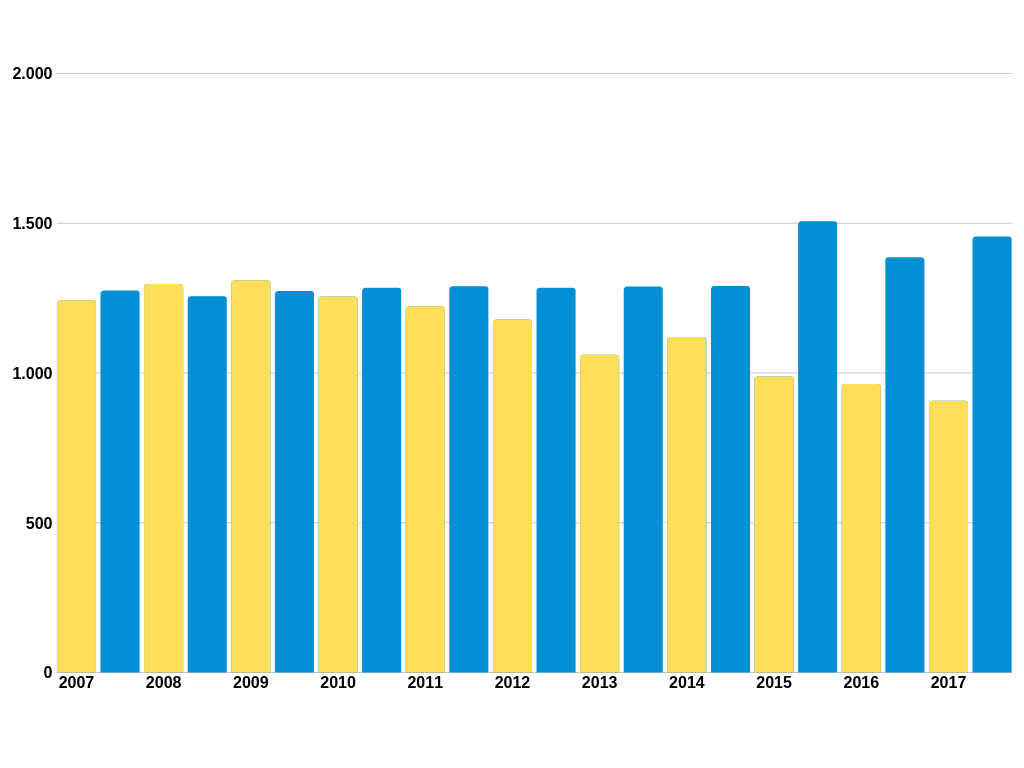 Partendo innanzitutto, come spesso capita, dai dati. Come si può facilmente evincere dal grafico qui sotto (fonte: Ufficio statistiche regione), se le nascite (colonne gialle) nel corso di 10 anni, quindi dal 2007, sono progressivamente diminuite, i decessi (colonne blu) sono altresì aumentati. Le nascite hanno subito, come si nota nel grafico, negli ultimi 3 anni presi in considerazione (dal 2015 al 2017), un drastico calo.