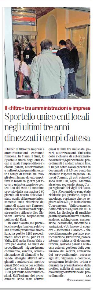 Questo dato rappresenta il numero di richieste di autorizzazione che gli imprenditori valdostani, nel corso del 2017, hanno presentato allo sportello unico degli enti locali della Valle d’Aosta, cosiddetto SUEL; richieste di nuova autorizzazione, di sub-ingresso, di sospensione, di cessazione, di modifica e/o variazione, nell’ambito delle attività produttive.